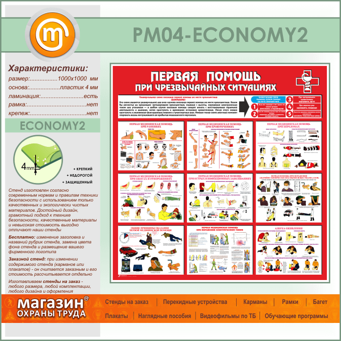 Стенд «Первая помощь при чрезвычайных ситуациях» (PM-04-ECONOMY2) в Ульяновске купить