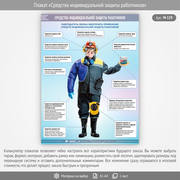 Плакат «Средства индивидуальной защиты работников» (М-129, 1 лист)
