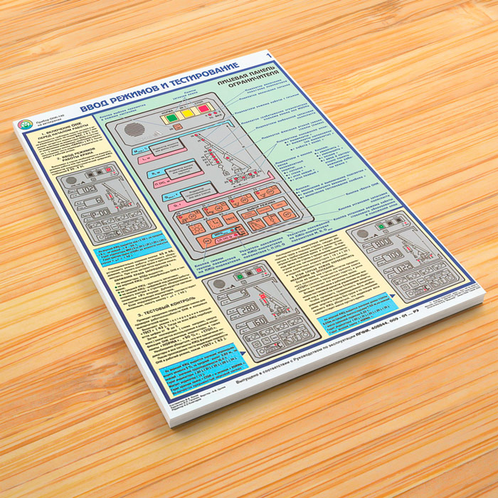 - Плакат «Ввод режимов и тестирование» – устройство лицевой панели ограничителя, включение ОНК перед началом работы, ввод режимов работы крана и тестовый контроль