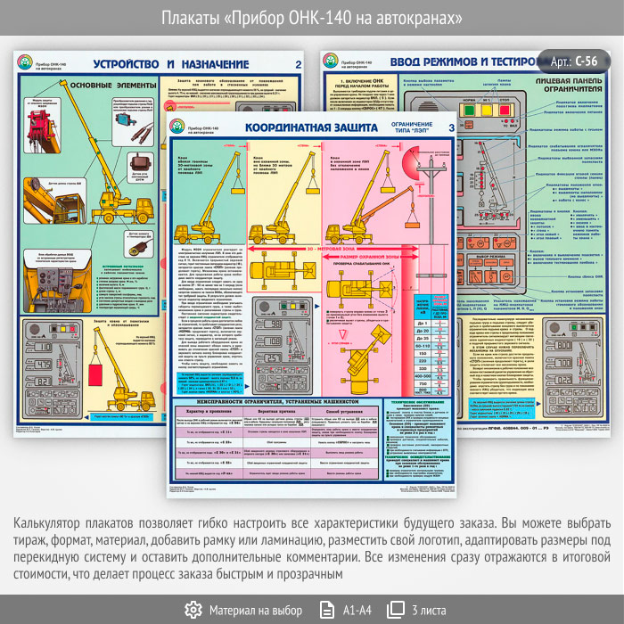 Комплект плакатов «Прибор ОНК-140 на автокранах» из 3 листов – достойное качество и полезная информация по приемлемой цене