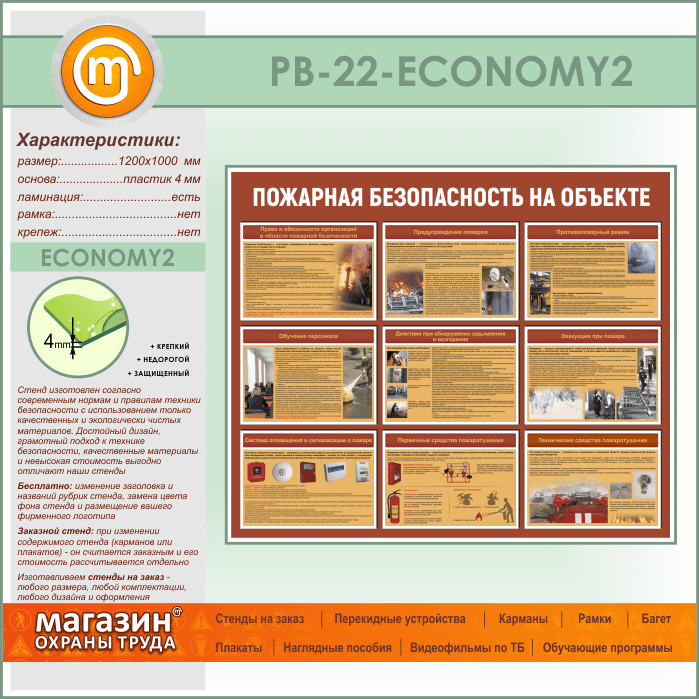 Стенд «Пожарная безопасность на объекте» (PB-22-ECONOMY2) в Ульяновске купить