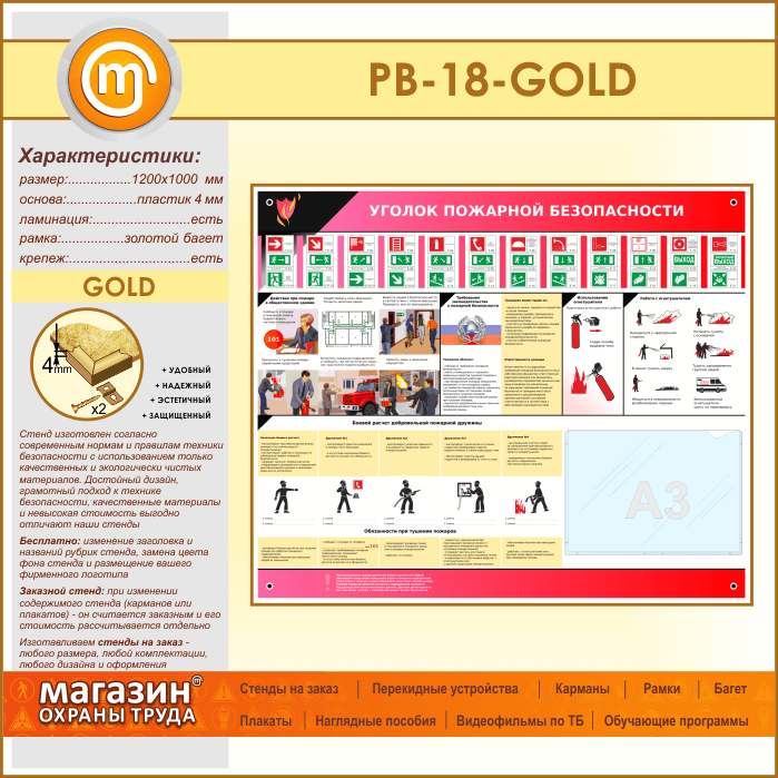 Стенд «Уголок пожарной безопасности» с карманом А3 формата (PB-18-GOLD) в Ульяновске купить