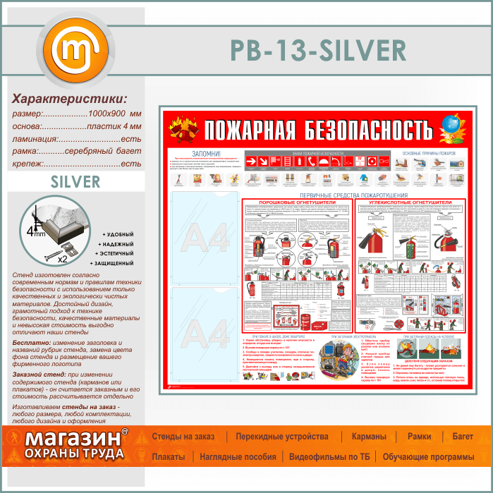 Стенд «Пожарная безопасность» с 2 карманами (PB-13-SILVER) в Ульяновске купить