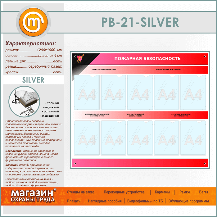 Стенд «Пожарная безопасность» с 10 карманами (PB-21-SILVER) в Ульяновске купить