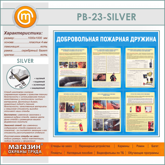 Стенд «Добровольная пожарная дружина» (PB-23-SILVER) в Ульяновске купить