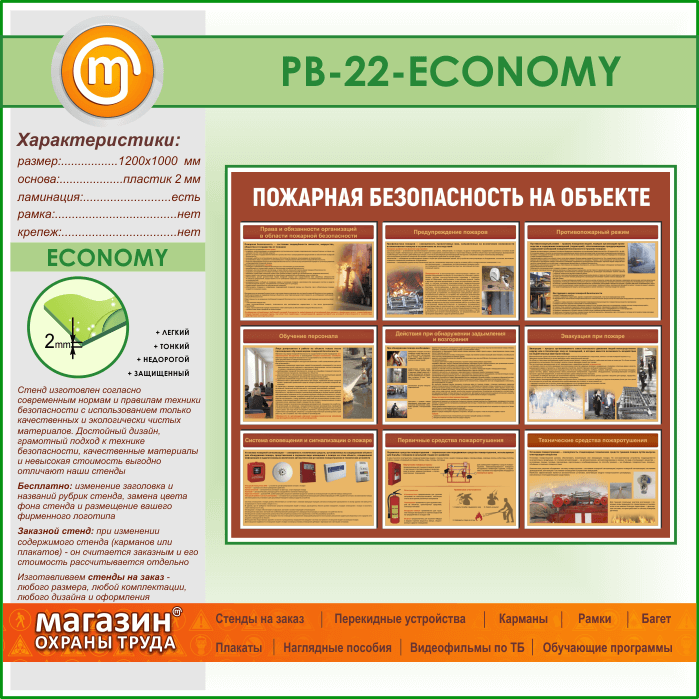 Стенд «Пожарная безопасность на объекте» (PB-22-ECONOMY) в Ульяновске купить