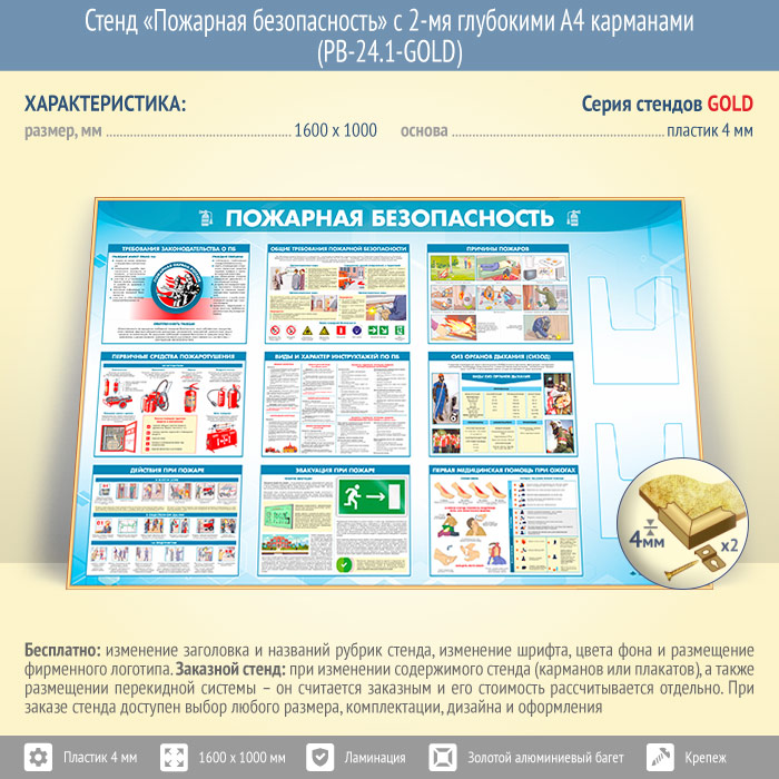 Стенд «Пожарная безопасность» с 2-мя глубокими А4 карманами (PB-24.1-GOLD) в Ульяновске купить