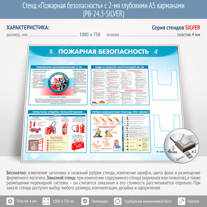 Стенд «Пожарная безопасность» с 2-мя глубокими А5 карманами (PB-24.3-SILVER) в Ульяновске купить
