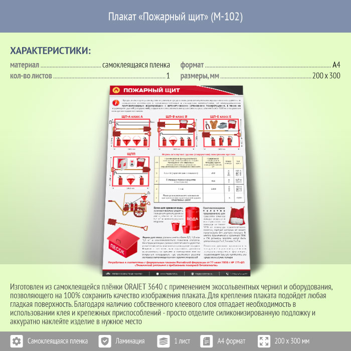 Плакат «Пожарный щит» (М-102, самоклеящаяся пленка, А4, 1 лист) в Ульяновске купить