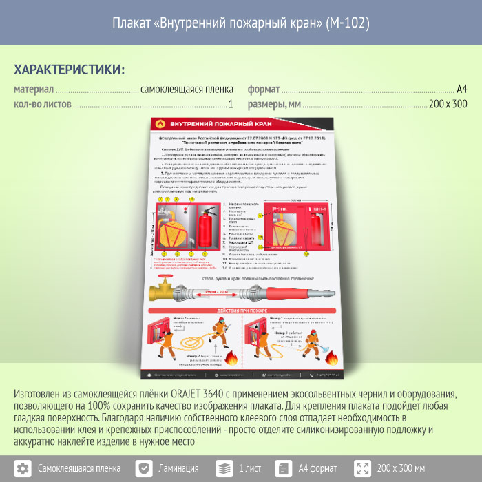 Плакат «Внутренний пожарный кран» (М-103, самоклеящаяся пленка, А4, 1 лист) в Ульяновске купить