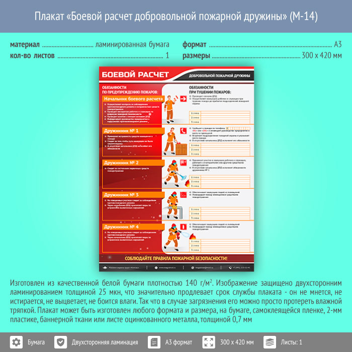 Плакат «Боевой расчет добровольной пожарной дружины» (М-14, ламинированная бумага, А3, 1 лист) в Ульяновске купить