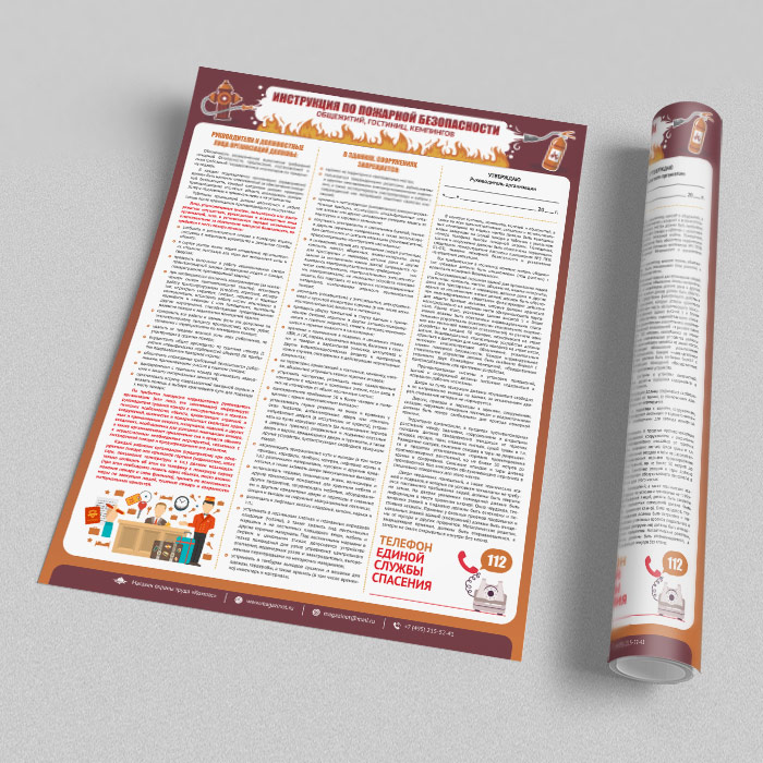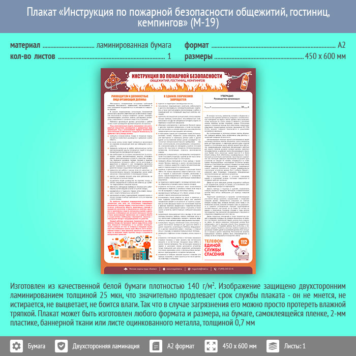 Плакат «Инструкция по пожарной безопасности общежитий, гостиниц, кемпингов» (М-19, ламинированная бумага, А2, 1 лист) в Ульяновске купить