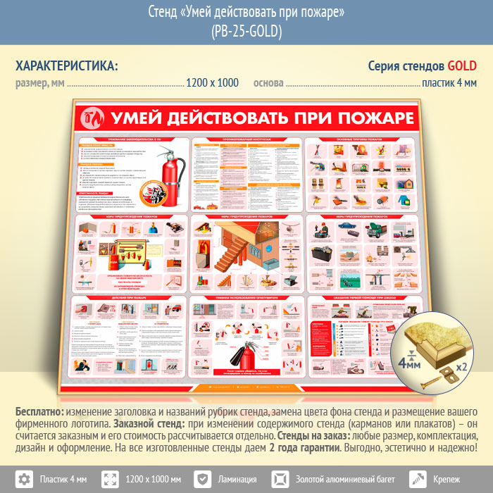 Стенд «Умей действовать при пожаре» (PB-25-GOLD) в Ульяновске купить
