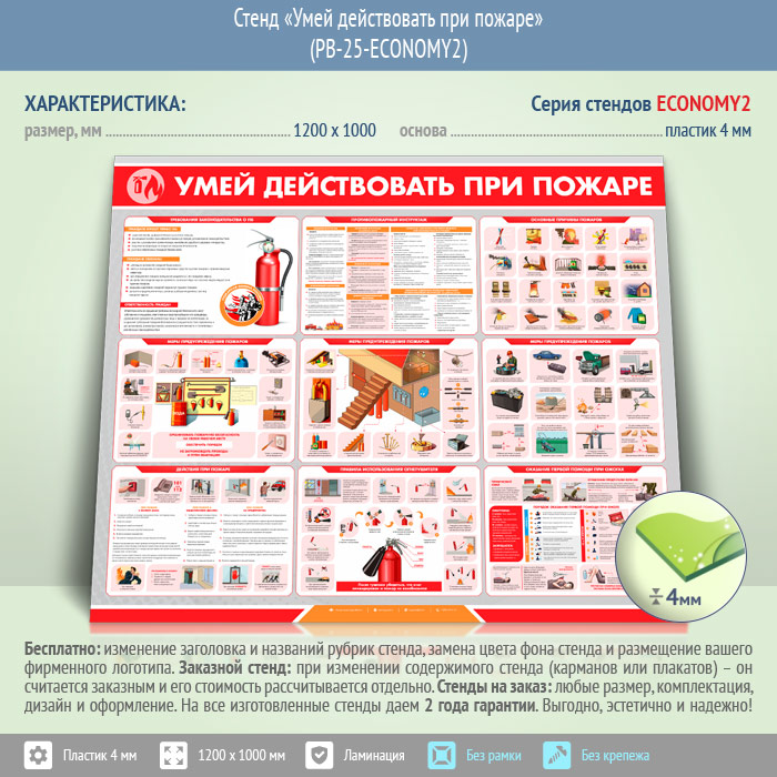 Стенд «Умей действовать при пожаре» (PB-25-ECONOMY2) в Ульяновске купить