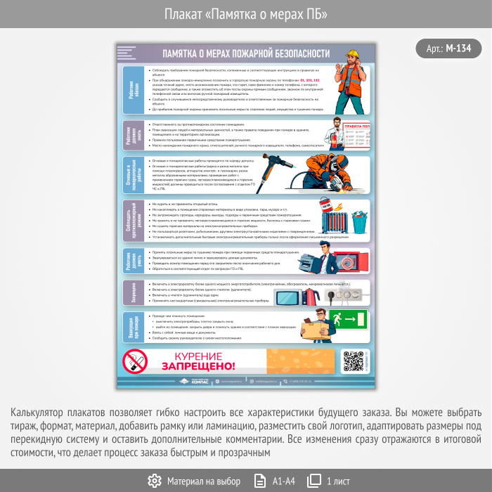 Плакат «Памятка о мерах ПБ» с QR (М-134, 1 лист) в Ульяновске купить