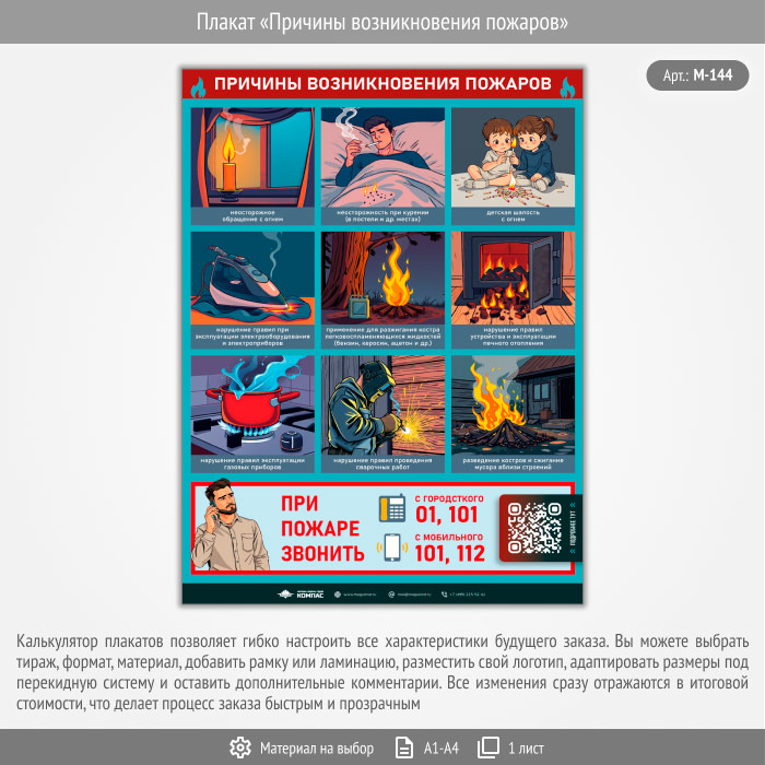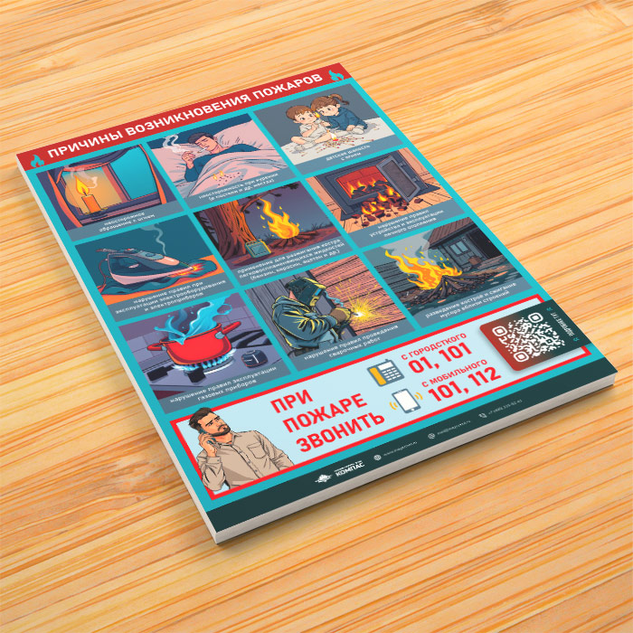 Плакат «Причины возникновения пожаров» с QR (М-144, 1 лист) в Ульяновске купить
