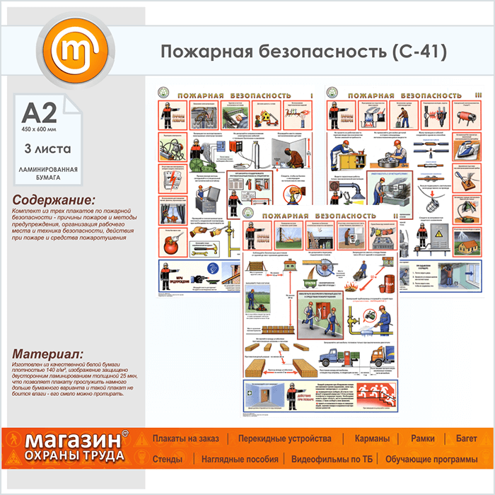 Плакаты «Пожарная безопасность» (С-41, ламинированная бумага, А2, 3 листа) в Ульяновске купить