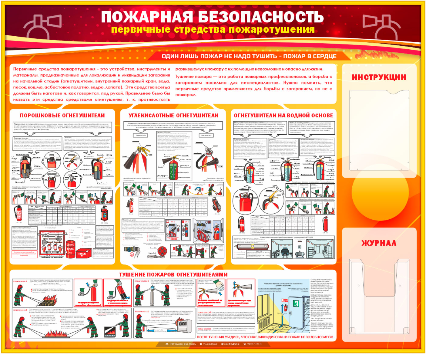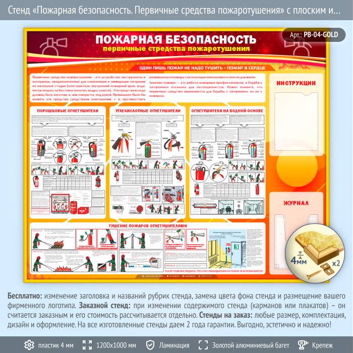 Стенд «Пожарная безопасность. Первичные средства пожаротушения» с плоским и объемным карманами (PB-04-GOLD) в Ульяновске купить