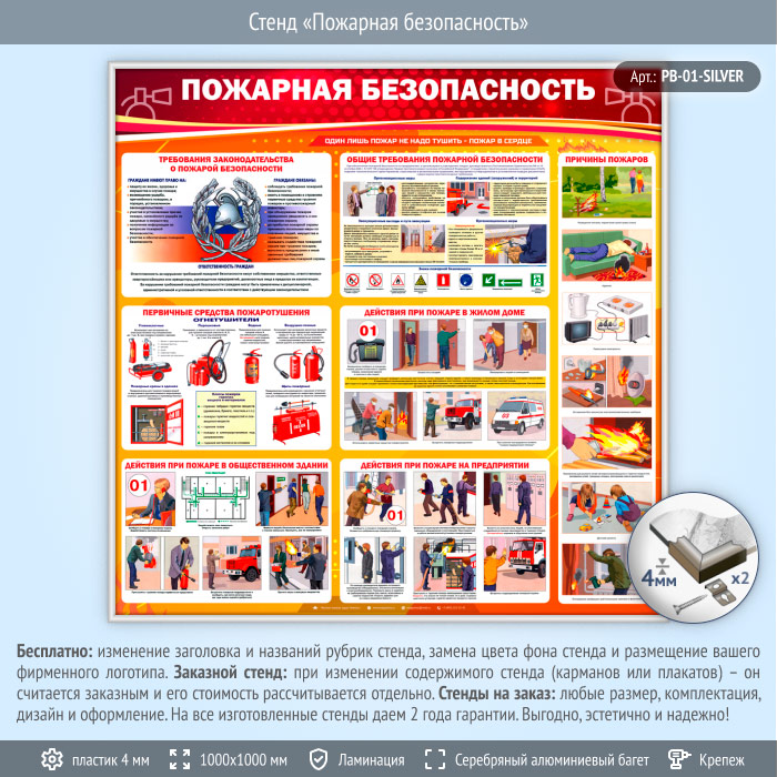Стенд «Пожарная безопасность» (PB-01-SILVER) в Ульяновске купить