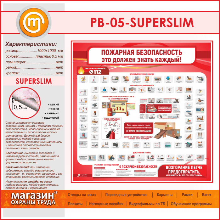 Стенд «Пожарная безопасность. Это должен знать каждый» (PB-05-SUPERSLIM) в Ульяновске купить