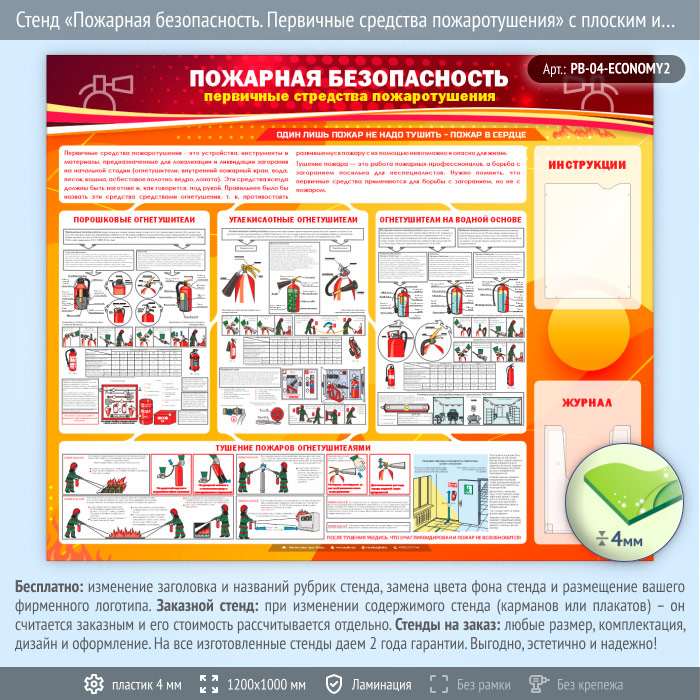 Стенд «Пожарная безопасность. Первичные средства пожаротушения» с плоским и объемным карманами (PB-04-ECONOMY2) в Ульяновске купить