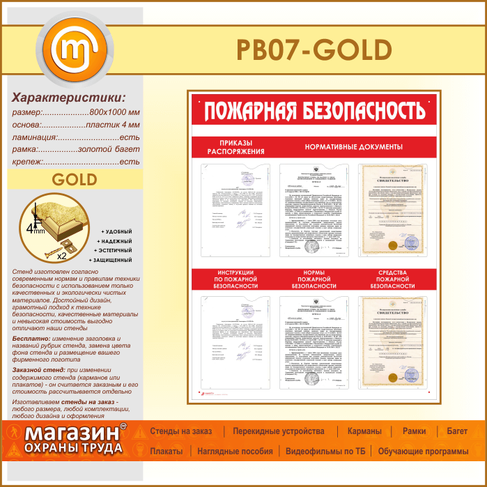 Стенд «Пожарная безопасность» с 6 карманами (PB-07-GOLD) в Ульяновске купить