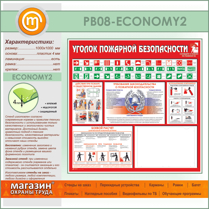 Стенд «Уголок пожарной безопасности» с карманом А3 формата (PB-08-ECONOMY2) в Ульяновске купить