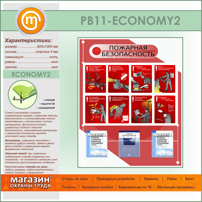 Стенд «Стенд пожарная безопасность в строительстве» с 3 объемными карманами (PB-11-ECONOMY2) в Ульяновске купить