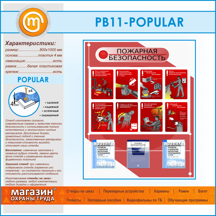 Стенд «Стенд пожарная безопасность в строительстве» с 3 объемными карманами (PB-11-POPULAR) в Ульяновске купить