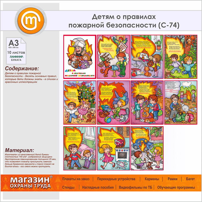 Плакаты «Детям о правилах пожарной безопасности» (С-74, ламинированная бумага, А3, 10 листов) в Ульяновске купить