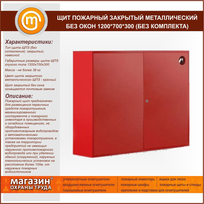 Щит пожарный закрытый металлический без окон 1200*700*300 (без комплекта) в Ульяновске купить