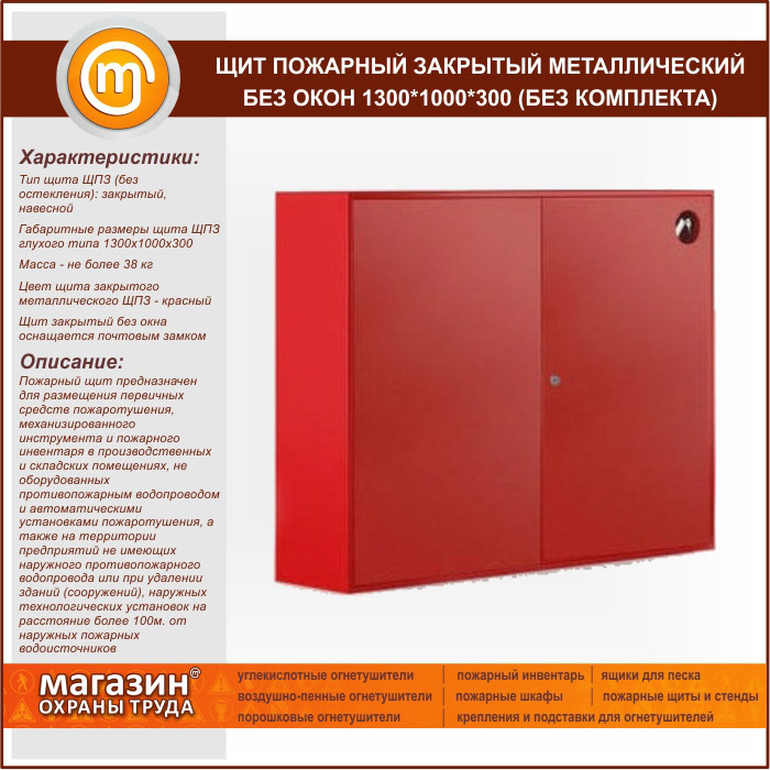 Щит пожарный закрытый металлический без окон 1300*1000*300 (без комплекта) в Ульяновске купить