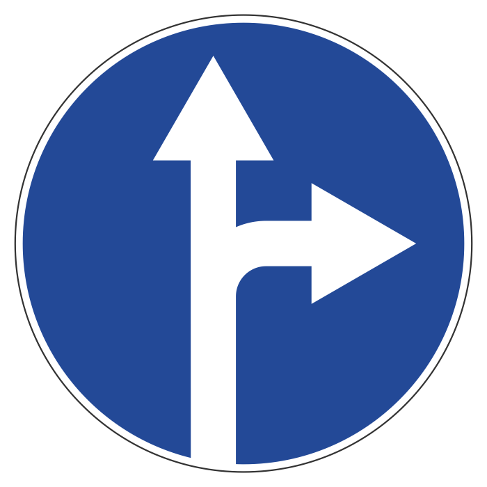 Дорожный знак 4.1.4 «Движение прямо или направо» (металл 0,8 мм, I типоразмер: диаметр 600 мм, С/О пленка: тип А коммерческая) в Ульяновске купить