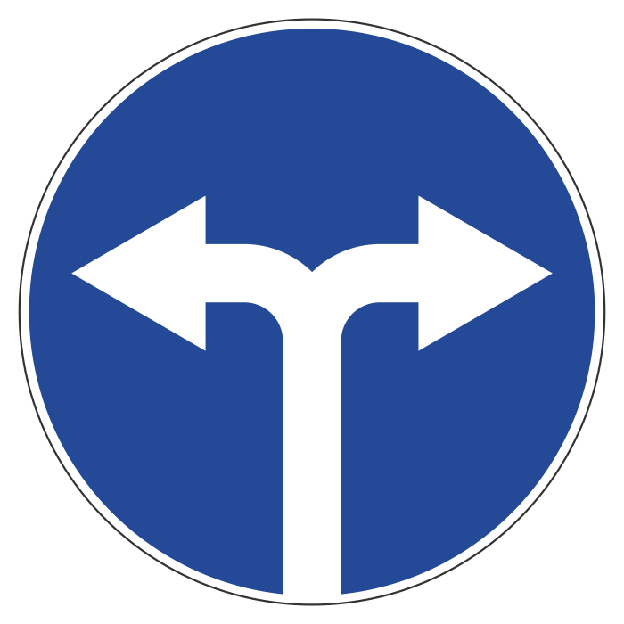 Дорожный знак 4.1.6 «Движение направо или налево» (металл 0,8 мм, III типоразмер: диаметр 900 мм, С/О пленка: тип А инженерная) в Ульяновске купить