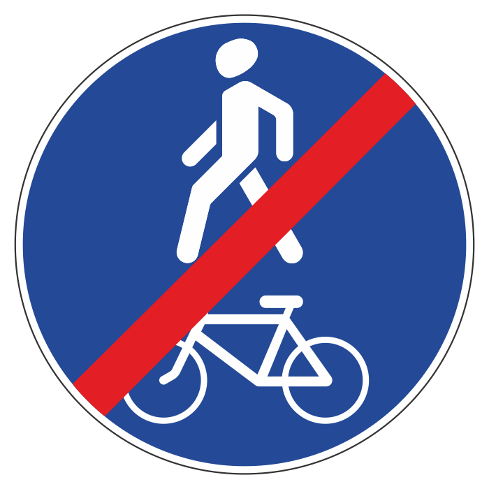 Дорожный знак 4.5.3 «Конец пешеходной и велосипедной дорожки с совмещенным движением» (металл 0,8 мм, II типоразмер: диаметр 700 мм, С/О пленка: тип Б высокоинтенсивная) в Ульяновске купить