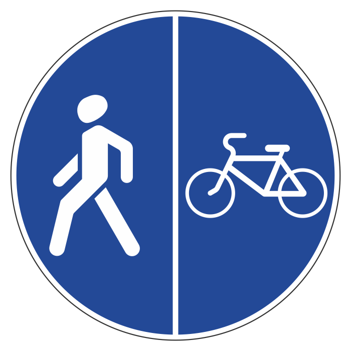 Дорожный знак 4.5.5 «Пешеходная и велосипедная дорожка с разделением движения» (металл 0,8 мм, II типоразмер: диаметр 700 мм, С/О пленка: тип Б высокоинтенсивная) в Ульяновске купить