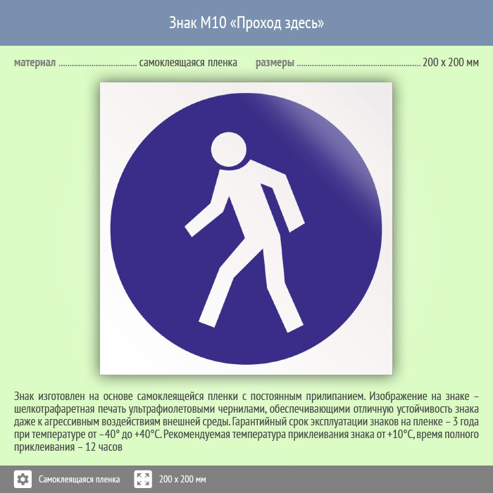 Знак M10 «Проход здесь» (пленка, 200х200 мм) в Ульяновске купить