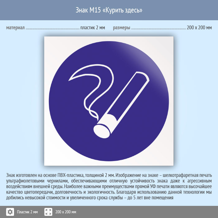 Знак M15 «Курить здесь» (исключен) (пластик, 200х200 мм) в Ульяновске купить