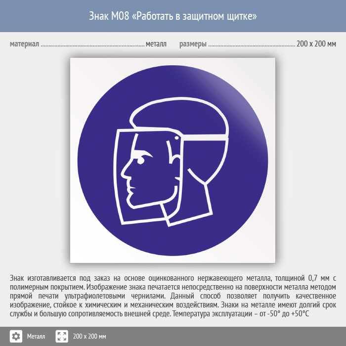 Знак M08 «Работать в защитном щитке» (металл, 200х200 мм) в Ульяновске купить