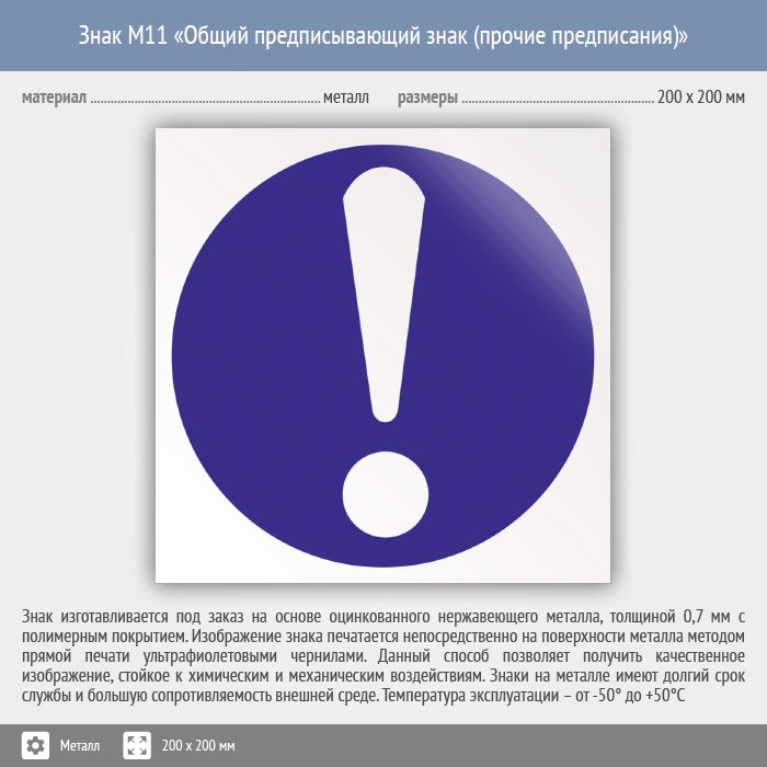 Знак M11 «Общий предписывающий знак (прочие предписания)» (металл, 200х200 мм) в Ульяновске купить