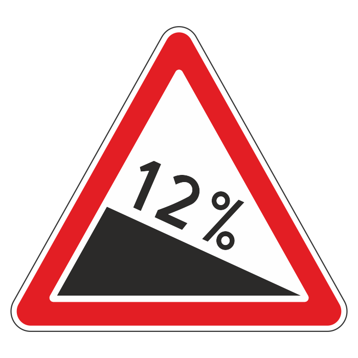 Дорожный знак 1.13 «Крутой спуск» (металл 0,8 мм, II типоразмер: сторона 900 мм, С/О пленка: тип А коммерческая) в Ульяновске купить