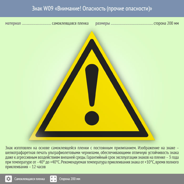 Знак W09 «Внимание! опасность (прочие опасности)» (пленка, сторона 200 мм) в Ульяновске купить