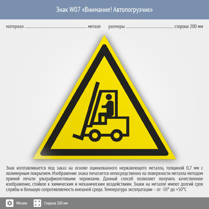Знак W07 «Внимание! автопогрузчик» (металл, сторона 200 мм) в Ульяновске купить