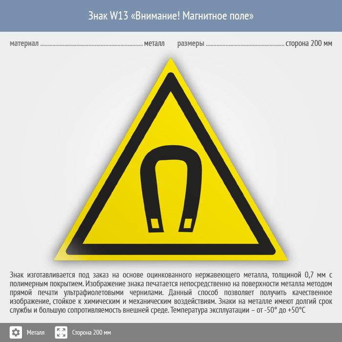 Знак W13 «Внимание! магнитное поле» (металл, сторона 200 мм) в Ульяновске купить