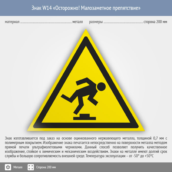 Знак W14 «Осторожно! малозаметное препятствие» (металл, сторона 200 мм) в Ульяновске купить