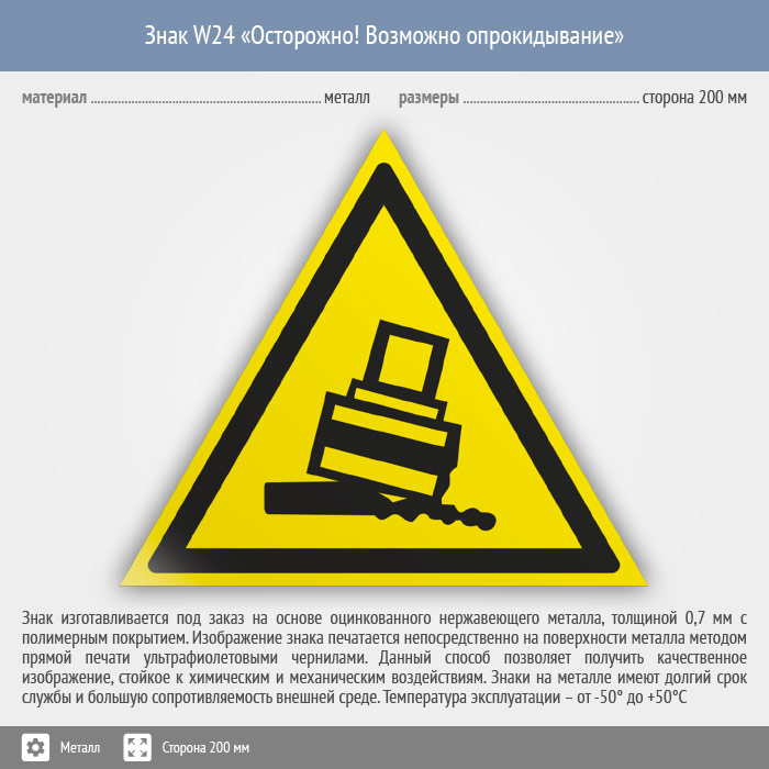 Знак W24 «Осторожно! возможно опрокидывание» (металл, сторона 200 мм) в Ульяновске купить