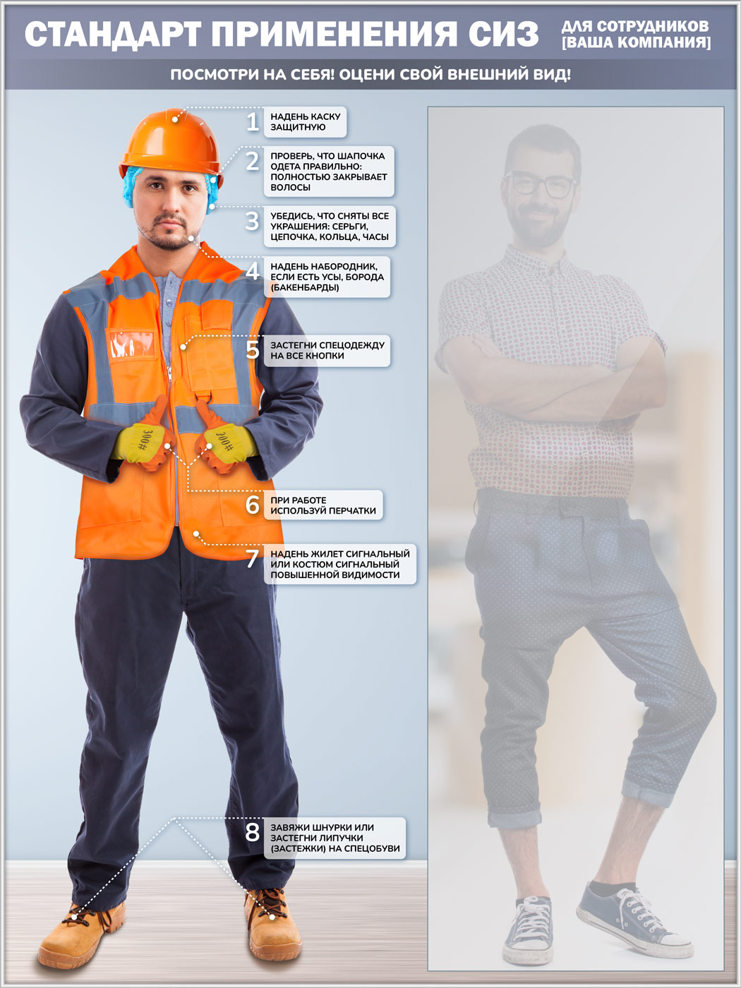 Стенд для демонстрации применения СИЗ с зеркалом, 1500х2000 мм в серебряном багете (СПС-03-С) в Ульяновске купить