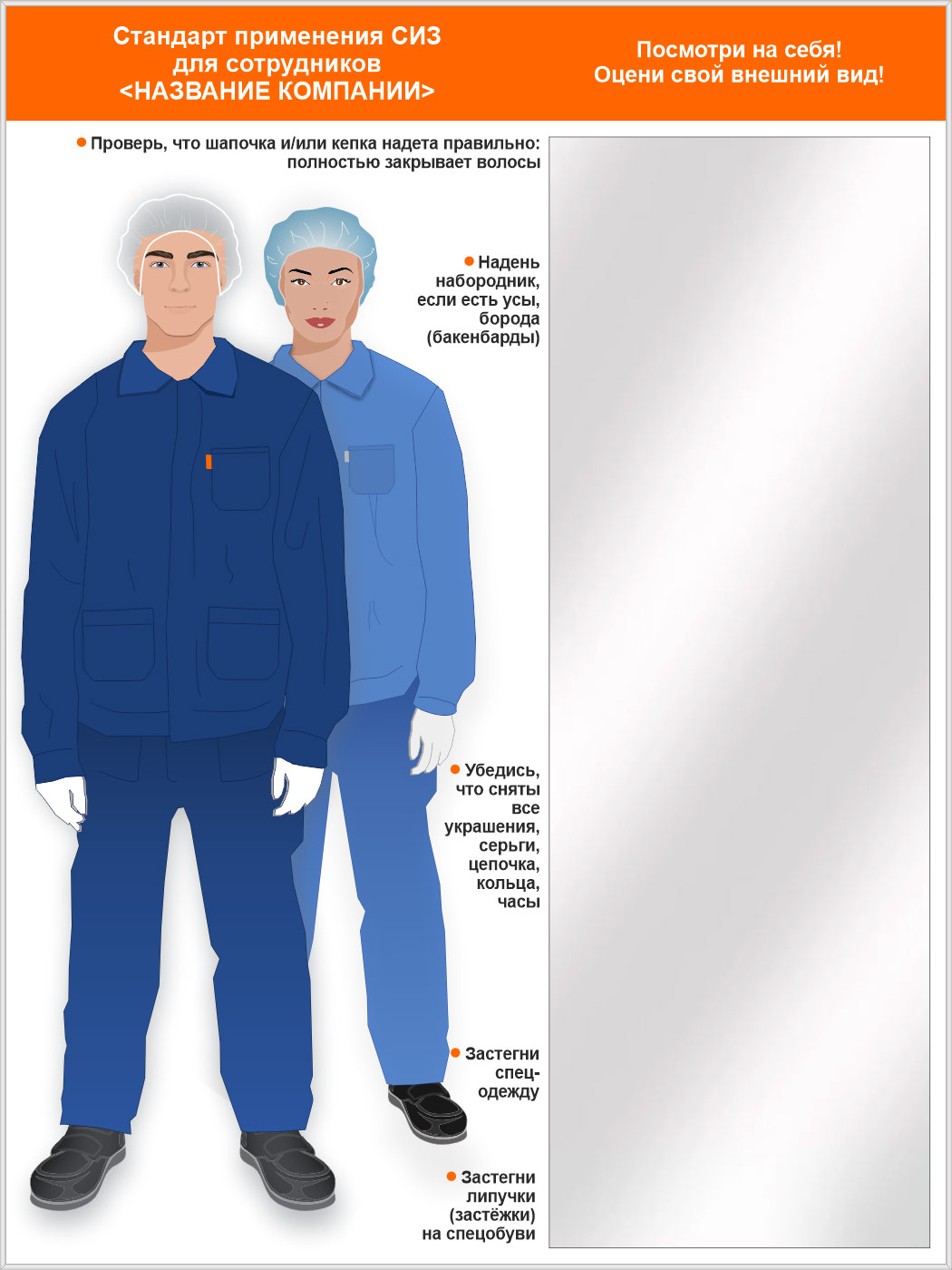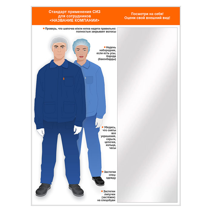 Стенд для демонстрации применения СИЗ с зеркалом, 1500х2000 мм в серебряном багете (СПС-04.2-С) в Ульяновске купить