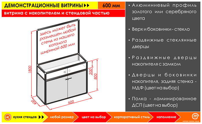 Витрина с накопителем и стендовой частью, 600 мм в Ульяновске купить