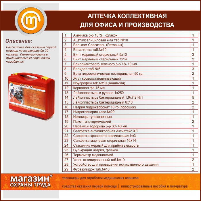 Аптечка КОЛЛЕКТИВНАЯ для офиса и производства (до 30 человек) - пластиковый чемодан в Ульяновске купить